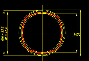 Profil DIN 32712 – P4C 25 mit d1=25mm, d2=21mm, e=5mm -> dre=d2+4e=41mm