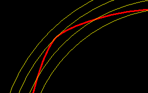 Wenn man allerdings die Exzentrizität zu groß wählt, bekommt man den vom P4C-Profil bekannten Effekt, dass die Polygonkurve die harmonische Bahn verlässt. Dann muss man die Kurve wie beim P4C-Profil mit einem Kreisbogen begrenzen.