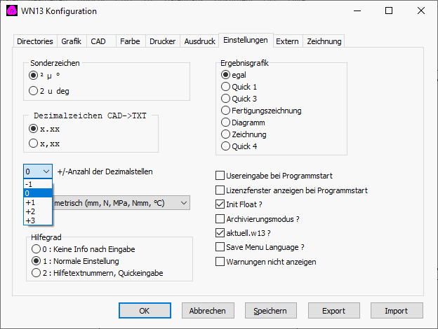 Alle Programme: Einstellungen Dezimalstellen