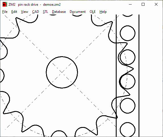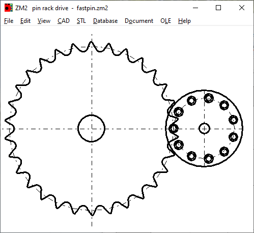 With ZM2 you can also calculate a gear with a pin wheel (pins on a bolt circle) instead of a pin rack.