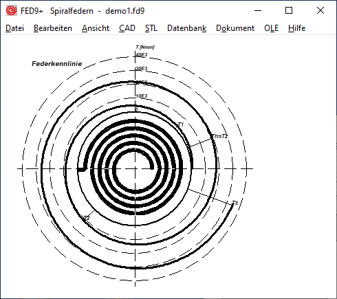 Kennlinie der Spiralfeder als Polardiagramm in FED9+