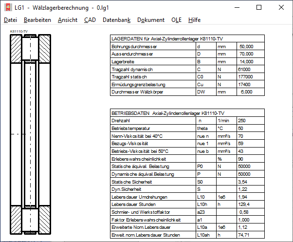 Mit LG1 kann man jetzt auch Axiallager berechnen: Axial-Nadelkränze und Axial-Zylinderrollenlager wurden neu aufgenommen.