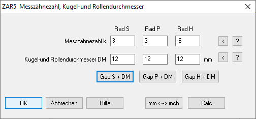 ZAR5, ZAR7, ZAR8: Zahnlückenzeichnung bei Eingabe Messkreis