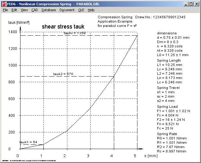 FED6 offers a new diagram of the shear stress tau (static load) or tauk (dynamic load) as function of spring travel s.