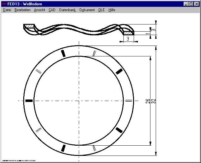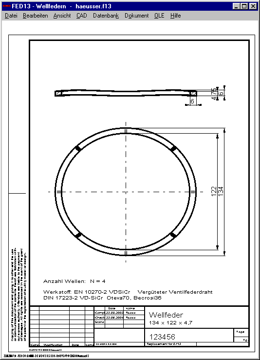 FED13 generiert eine Fertigungszeichnung mit allen Angaben zur Herstellung der Wellfeder.