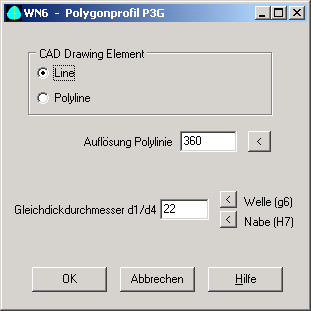 Bei der Generierung des P3G-Profiles als DXF- oder IGES-Datei kann man den Gleichdickdurchmesser verändern, oder den Toleranzmittelwert für Wellenprofil oder Nabenprofil einsetzen lassen. Die Profildaten kann man für die Herstellung des P3G-Profils mit CNC-Maschine, Erodierverfahren etc. verwenden.
