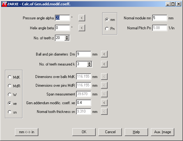 Besides span measurement, dimension over balls/pins, and profile shift coefficient, you can now also enter tooth thickness sn.