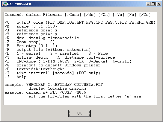 DXFPLOT, DXF-Manager, HPGL-Manager – Command Line Mode