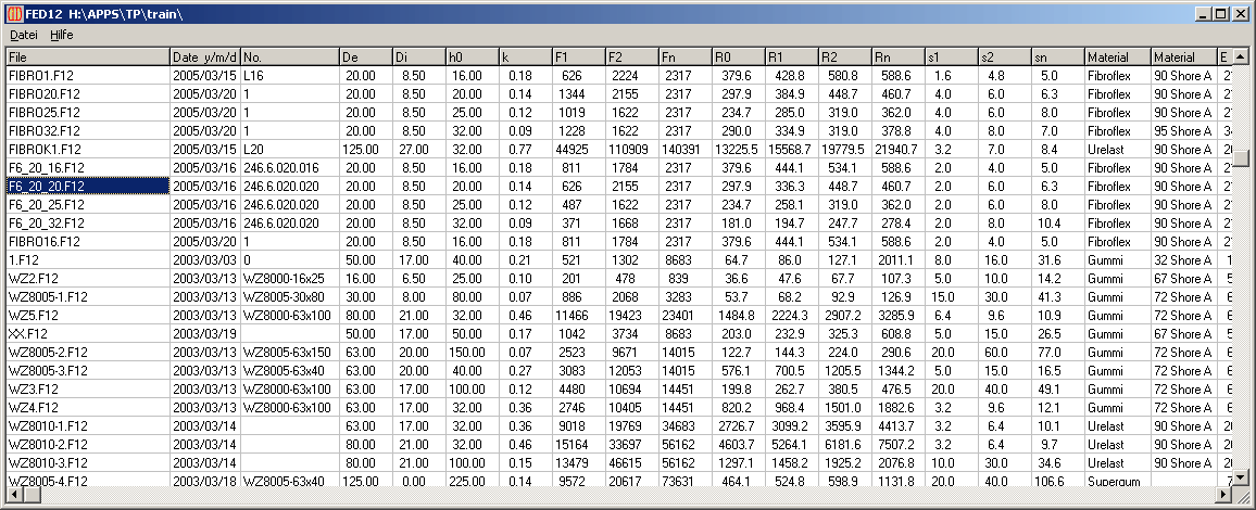 Eine Voransicht als Tabelle mit den wichtigsten Daten gibt es jetzt in allen Federprogrammen. Unter "Datei->Öffnen Tabelle" kann man alle Federn im aktuellen Ordner nach jeder beliebigen Größe sortieren (Klick mit rechter Maustaste ins Titelfeld), oder per Mausklick im Hintergrund die Quick-Ansicht anzeigen.
