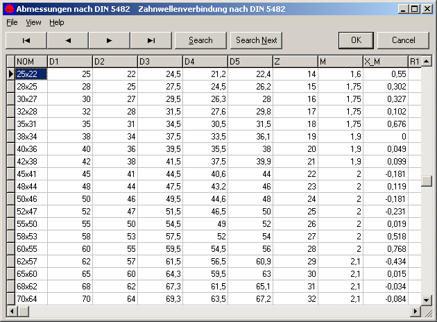 In der Tabelle nach DIN 5480 wird für die Zahnwelle als Prüfmaß die Zahnweite und für die Nabe das Rollenmaß ausgegeben. Unter "Bearbeiten->Messen" kann man jetzt konfigurieren, daß für die Zahnwelle ebenfalls das Rollenmaß in der CAD-Tabelle ausgegeben wird.