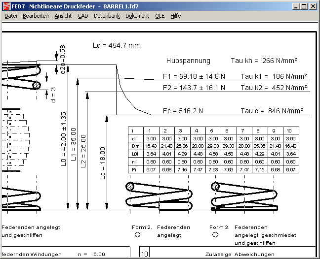 Bei FED6 und FED7 kann man in der Fertigungszeichnung die Drahtlänge mit ausgeben, und in der Tabelle mit den Windungsabschnitten die Steigung P ergänzen.