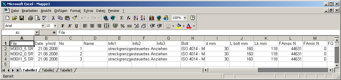 Preview table (at "File->Open Table" ) was extended by forces and safety factors to 30 columns now. Preview is predestined for variable calculations. Create a new folder and save the varation calculations under different file names.