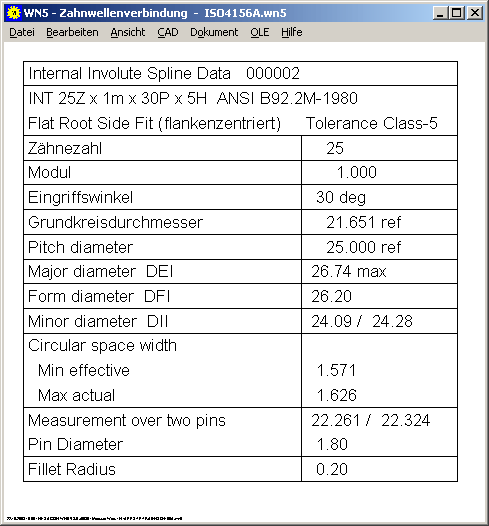 In WN5 kann man jetzt wählen, ob die Verzahnung nach ANSI B92.2M oder ISO 4156 berechnet werden soll. Standardeinstellung ist ISO 4156. Je nach Einstellung wird dann in der Quick-Ansicht und unter Ansicht->Tabelle ein Datenfeld nach ANSI B92.2M oder ISO 4156 ausgegeben.