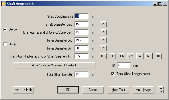 WL1+ V18.0 lets you define conical inner diameters by input of start diameter and end diameter of the shaft sections.