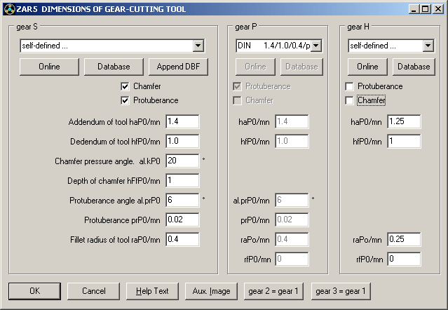 Input of tool profile was eased by check boxes "protuberance profile" and "chanfer". Only the required input fields are shown depending on tooth profile type.