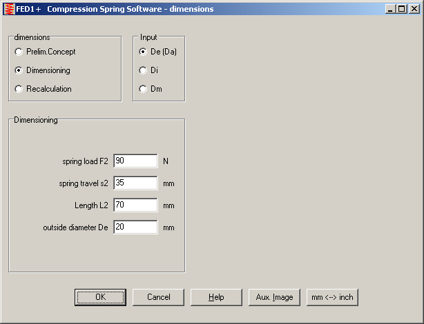 If you wanted to calculate a spring with one load and one spring travel, you had to set F1=0, s1=0 and L1=L0 until now. In the new version, you can configure this case at Edit->Calculation Method. Input windows show only one load and one spring travel or assembly length in this case.