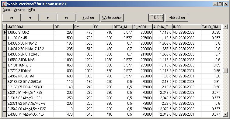 After choosing washer from clamping plate database, washer material is now selected from mat_p_1.dbf database with material data according to actual VDI 2230 (default: 1.0050).