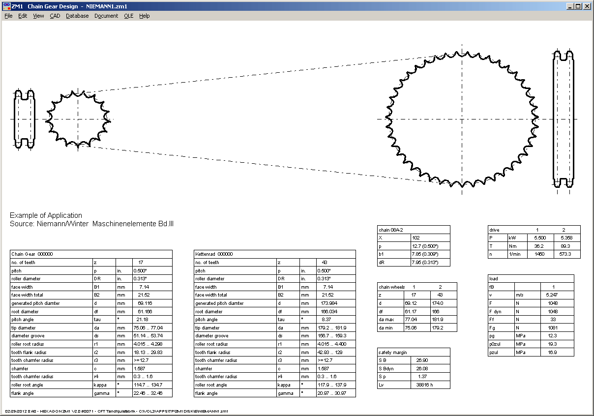 Roller chains of European style are described in DIN 8187, American roller chains according to DIN 8188. Both types are covered by ISO 606. ZM1 database included only few chain sizes to DIN 8188 until now. Database now was extended with roller chains 10A, 12A, 16A, 20A, 24A, 32A, 40A and 48A. ZM1 generates sprocket profile as CAD file.