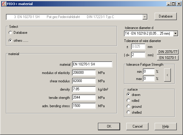 At "Edit->Material", you can now enter permissible bending stress instead of permissible shear stress. Because torsion spring is stressed by bending and not by torsion.