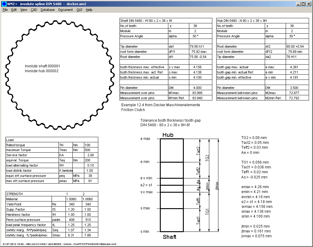 New Quick3 view contains drawing of internal and external spline, tables with dimensions and strength data, and tolerance chart.