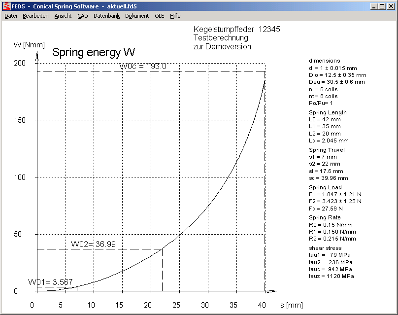 In das Diagramm wird die Federarbeit W01, W02 und W0c eingezeichnet.