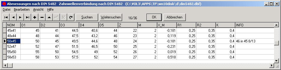 WN10 – Korrektur DIN 5482-Datenbank 50x46 geändert in 50x45