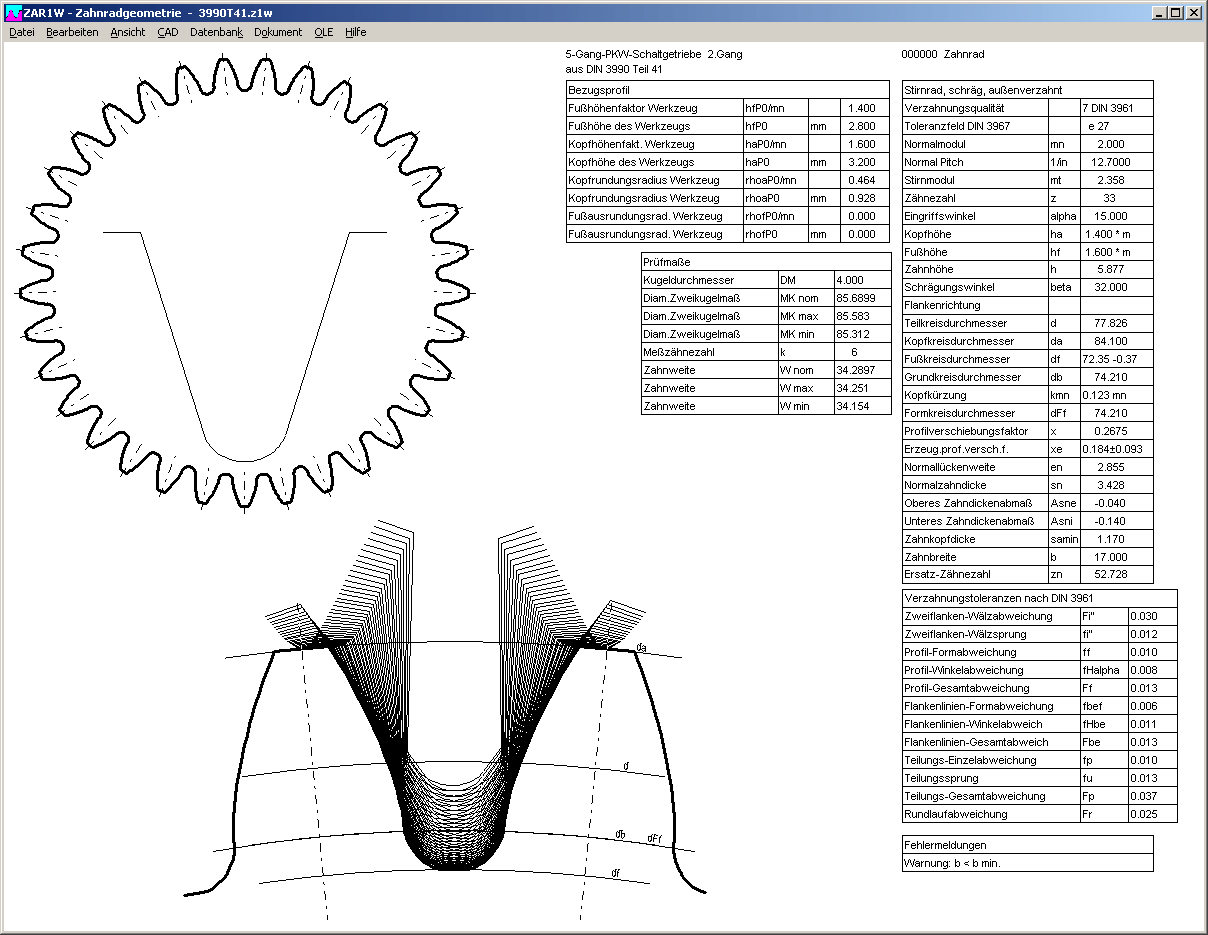 Die Abmessungen eines Zahnrads kann man auch mit ZAR1 statt ZAR1W berechnen. In ZAR1 muss man aber immer ein Zahnradpaar eingeben. Die Eingabe eines Gegenrads entfällt in ZAR1W, dafür kann man keine Festigkeit berechnen.