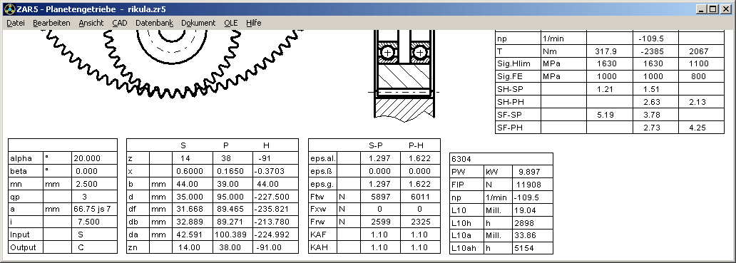 In ZAR5 kann man jetzt ähnlich wie in ZAR1+ ein Lastkollektiv eingeben. Dabei definiert man die Drehmomente an der Eingangswelle und die zugehörigen Umdrehungen der Welle. Also nicht die Lastspiele, weil dies beim Planetengetriebe am Sonnenrad und Hohlrad von der Anzahl der Planetenräder abhängt, und bei den Planetenrädern wechselnde statt schwellende Last auftritt. Dies ist aber bei der Festigkeitsberechnung bereits berücksichtigt.