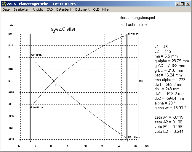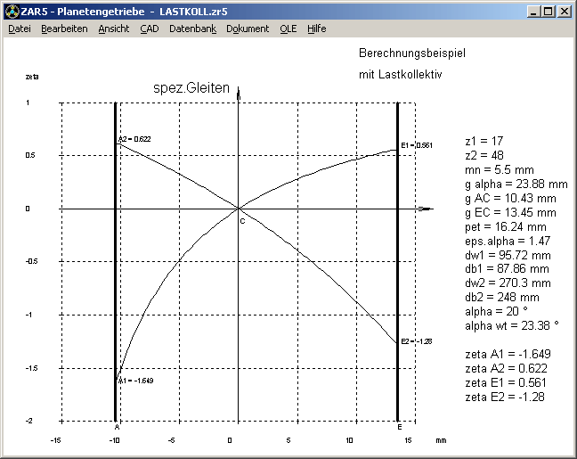 Die Grafiken für Spezifisches Gleiten in den Zahnradpaarungen S-P (Sonne-Planet) und P-H (Planet-Hohlrad) kann man jetzt auch in ZAR5 anzeigen lassen.