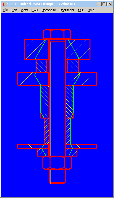 In the latest version of SR1 you can configure to calculate the elastic resilience by means of deformation cylinders to VDI2230:1986, or by means of deformation cones according to VDI 2230-1:2014. Unfortunately, calculation to VDI 2230-1:2014 assumes that clamping plates of every bolted joint can be treated as one deformation cone. But therefore, outside diameters should be similar, or should increase to a maximum in the middle between bolt head and nut. If this not applies, or E modules of clamping plate materials are not equal, elastic resilience of each clamping plate must be calculated separately. Bearing diameter dw for the upper surface of the next clamping plate is then bearing diameter for the lower side of the previous clamping plate. Formula (52) in VDI 2230-1:2014 is valid only if outside diameter of every clamping plate lies inside of the calculated deformation cone.