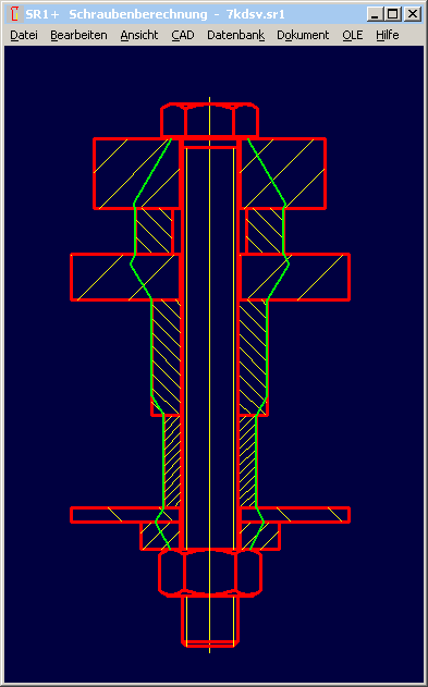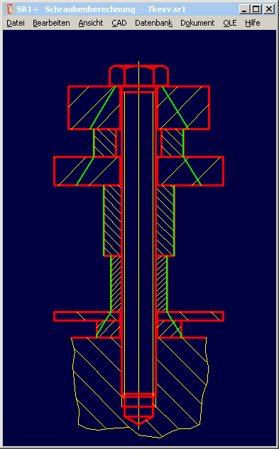 In SR1 kann die elastische Nachgiebigkeit jetzt auch nach VDI 2230-1:2014 berechnet werden. Die Berechnung nach VDI 2230:2014 deckt leider nur den Fall ab, daß die Verschraubung aus einem einzigen Spannungskegel besteht. Dafür müssen die Außendurchmesser der verspannten Teile gleichmäßig groß sein oder zur Mitte hin zunehmen.