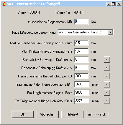 Die Eingabe eines zusätzlichen Drehmoments MB ist jetzt auch in SR1 möglich. MB ist immer statisch, kann positiv oder negativ sein.