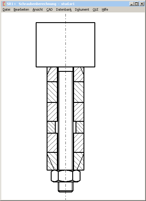 In Beispiel 1 von VDI 2230:2014 (Verschraubung Kolben mit Kolbenstange) wird der Verformungskegel wie bei einer DSV, die elastische Nachgiebigkeit des Muttergewindes aber wie bei einer ESV berechnet. Um diesen Fall auch mit SR1 berechnen zu können, wurde ein neuer Verschraubungstyp "ESV + dw", eine Einschraubverbindung mit Auflagedurchmesser definiert.