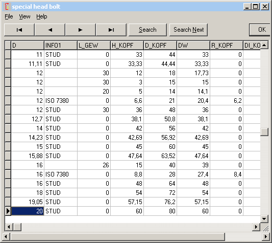 SR1 – Sonderkopf-Datenbank für Stehbolzen