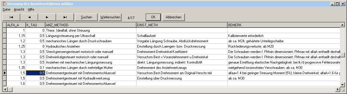 Den Anziehfaktor alphaA und Reduktionskoeffizient k tau kann man jetzt auch aus der aktualisierten Datenbank nach VDI 2230-1:2014 übernehmen.