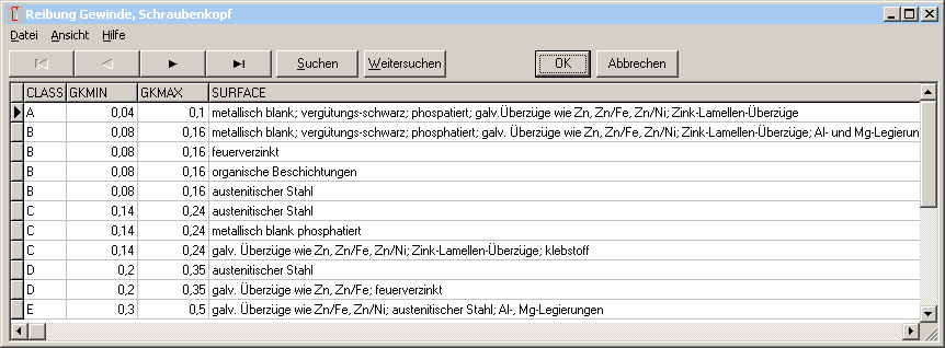 Min- und Max-Wert der Reibungskoeffizienten kann man jetzt auch aus einer Datenbank mit den Reibungsklassen nach VDI 2230-1:2014 übernehmen.