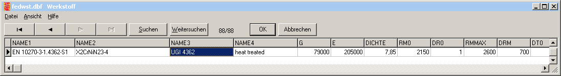 Der neue Werkstoff wurde in die fedwst-Datenbank übernommen (Nr.88). Die Daten stammen von Datenblatt UGI 4362. Eigenschaften: Zugfestigkeit wie 1.4310-HS, korrosionsbeständig wie 1.4401.