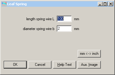 If the leaf spring geometry is just a piece of flat steel (as in FED15), you can now configure a simplified input for width, thickness and length of the leaf spring (at "Edit->Calculation method").