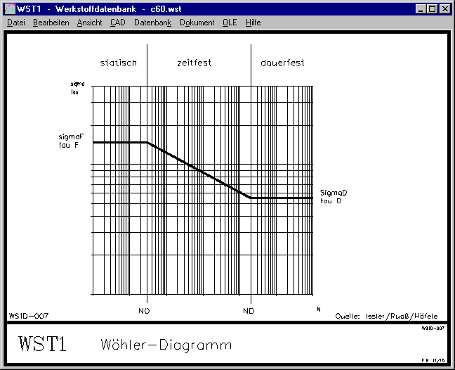 Im Eingabefenster zum Wöhler-Diagramm wurden Hilfetexte und ein Hilfebild zur Erläuterung der Eingaben ergänzt. Mit WST1 kann man 6 verschiedene Wöhlerkurven generieren: für Zug/Druck, Biegung und Torsion jeweils für wechselnde Last oder schwellende Last.