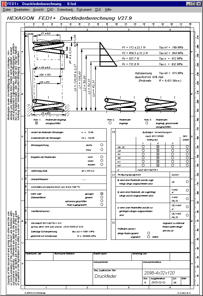 Falls ISO 7200 Zeichnungsrahmen mit 10 mm Rand konfiguriert wurde, werden in der DIN A4 Fertigungszeichnung bei den Federprogrammen die Tabellen jetzt so gestaucht, daß sie nicht mehr in den breiten Rand ragen.