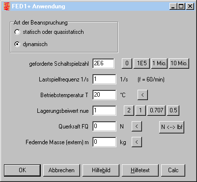 Wenn berechnete und geforderte Lastspielzahl auch in der Fertigungszeichnung gelistet werden soll, kreuzen Sie an "anzeigen Lastspiele bis Bruch" unter "Bearbeiten->Fertigungszeichnung".