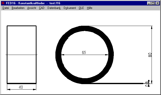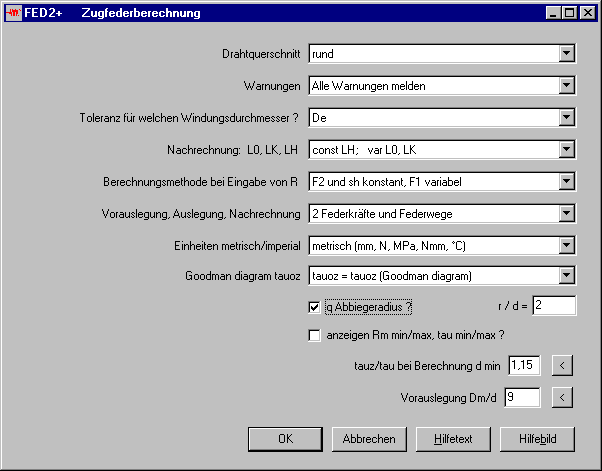 In FED16 gibt es eine Vorauslegung mit Eingabe von Federkraft und Auszuglänge, und das Programm berechnet die Abmessungen.