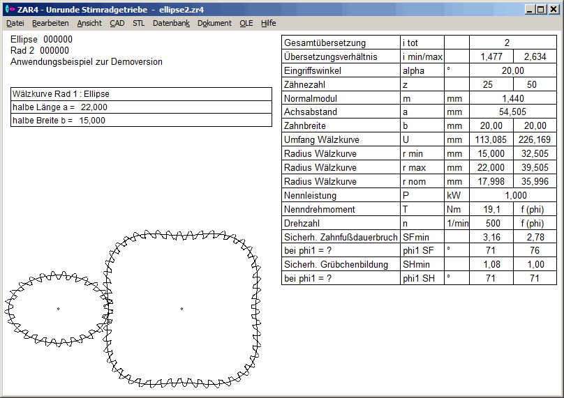 ZAR7 berechnet alle Zahnradpaarungen in einem Durchgang.