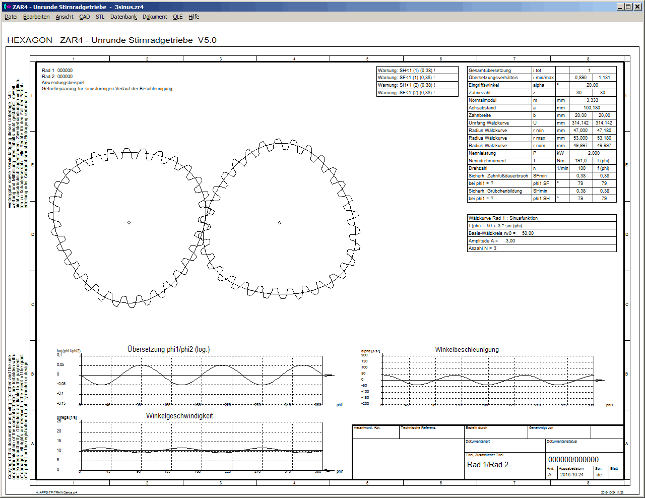 In der ZAR4 Software für unrunde Zahnräder gibt es jetzt neue Quick-Ansichten mit Zeichnungen, Diagrammen und Tabellen auf 1 Seite.