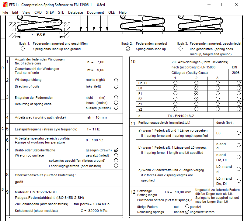 Production drawing in dual language German/English can be generated for compression springs now (View, Print, CAD DXF/IGES).