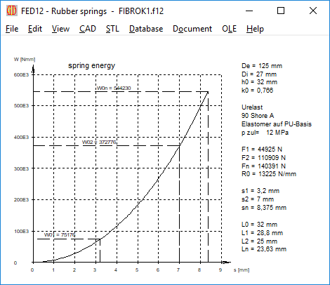 New in FED12 for rubber springs is a diagram of the spring energy.