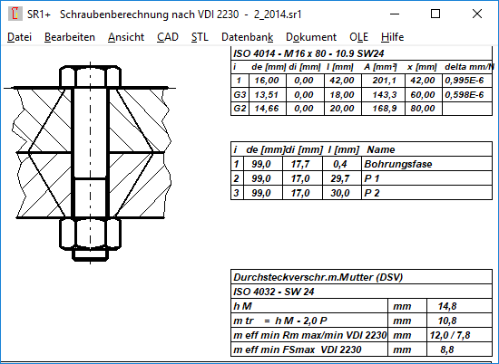 Im Ausdruck von SR1+ werden jetzt die Faktoren C1, C2 und C3 zur Berechnung der Mindesteinschraubtiefe nach VDI 2230 mit ausgedruckt für Nachweis- und Nachrechnungszwecke.