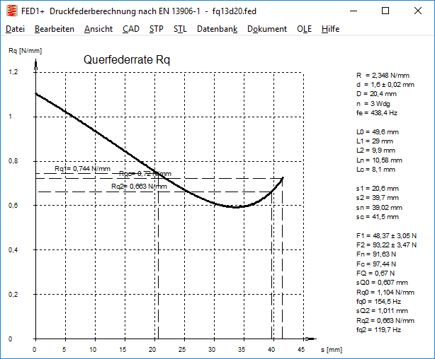 Die Federrate ergibt sich den Federkräften F1, F2 und dem Hub und wurde deshalb bisher eingeklammert angezeigt. Weil man aber inzwischen auch Toleranzen für die Federrate eingeben kann, wird R künftig ohne Klammern abgezeigt.