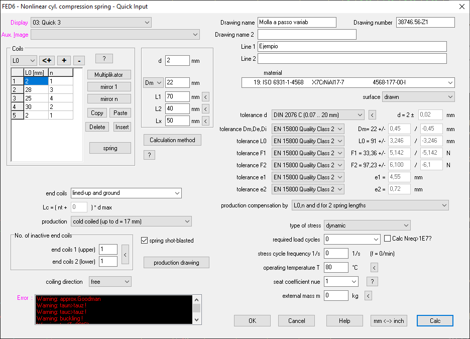 In the new quick input, all input windows for the recalculation of a non-linear cylindrical compression spring have been combined in one large input window.