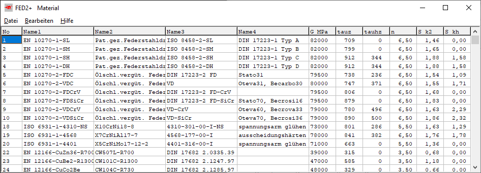 Gleich wie in FED1+ kann man jetzt auch bei Zugfedern und Drehfedern durch Vergleich der Werkstoffe aus der Datenbank den optimalen Werkstoff wählen.
